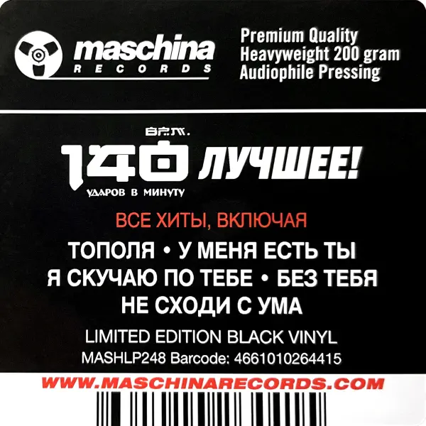 Legendinė rusų pop šokių muzikos grupė 140 ударов в минуту grįžta su išskirtiniu viniliniu leidiniu – Лучшее! – riboto tiražo rinktiniu albumu, kuriame surinkti jų didžiausi hitai. Išleista 2025 m. leidykloje Maschina Records, ši kompiliacija yra tikra šventė visiems, išsiilgusiems 2000-ųjų pradžios rusiško šokių muzikos aukso amžiaus.