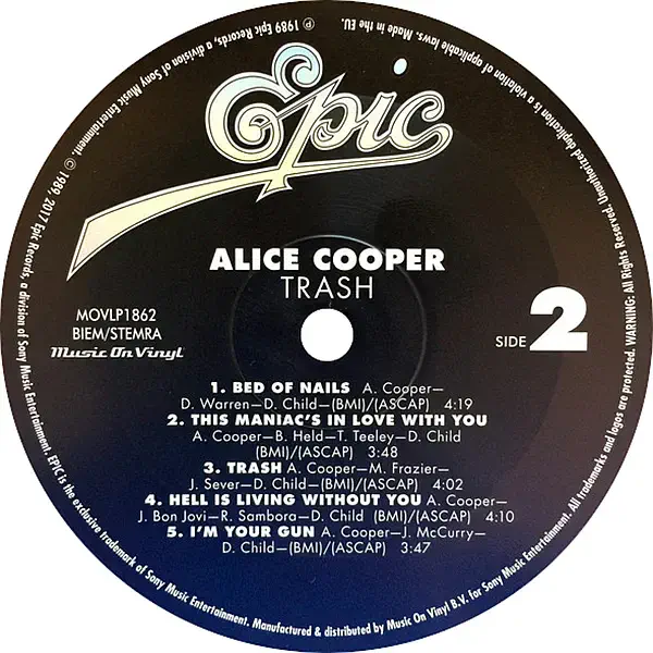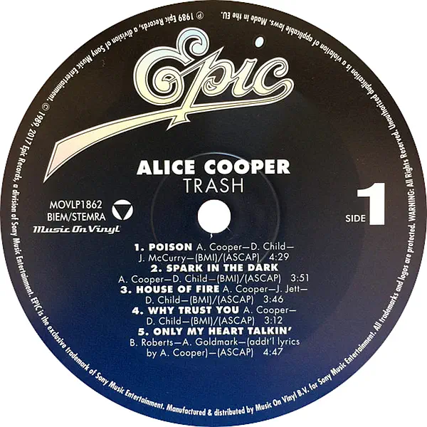 Trash – tai vienas sėkmingiausių Alice Cooper albumų karjeroje, sugrąžinęs šokiruojantį roko ikoną į pasaulinį topų elitą. Iš pradžių išleistas 1989 metais, šis albumas pasižymi stilingu 80-ųjų hard roko skambesiu, radijo hitais ir gausybe žvaigždinių svečių. 2024 m. leidykla Music On Vinyl kartu su Sony Music ir Epic pristato perleisto vinilo versiją – 180 g aukštos kokybės plokštelę, skirtą tikriems klasikinio roko gerbėjams.