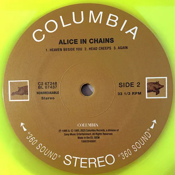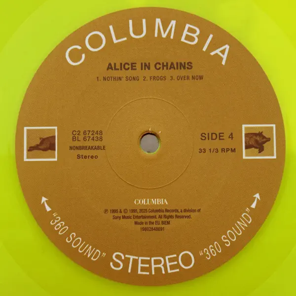 Galiausiai, minint 30-ąsias albumo metines, Alice In Chains sugrįžta kaip riboto tiražo 2LP leidimas ant ryškiai geltonos spalvos vinilo. Šis ryškus, kolekcinis formatas ne tik pagerbia albumo palikimą, bet ir tampa išskirtiniu akcentu kiekvieno vinilo kolekcijoje. Tai būtinas leidinys tiek ištikimiems gerbėjams, tiek tiems, kurie nori iš naujo atrasti tamsią, bet nepaprastai paveikią grunge istorijos pusę.