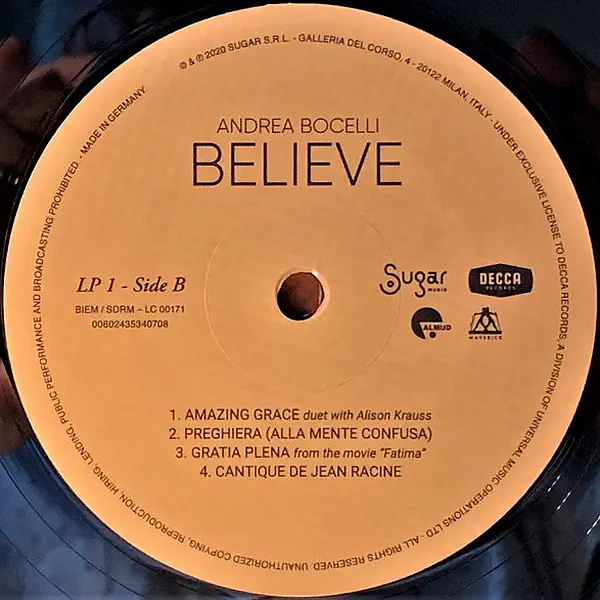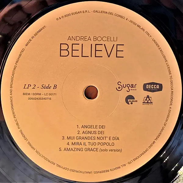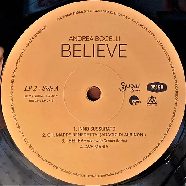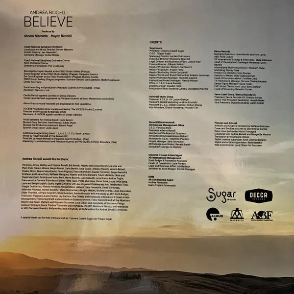 Nauja užpakuota vinilinė plokštelė Andrea Bocelli – Believe (Deluxe Edition) (2LP)