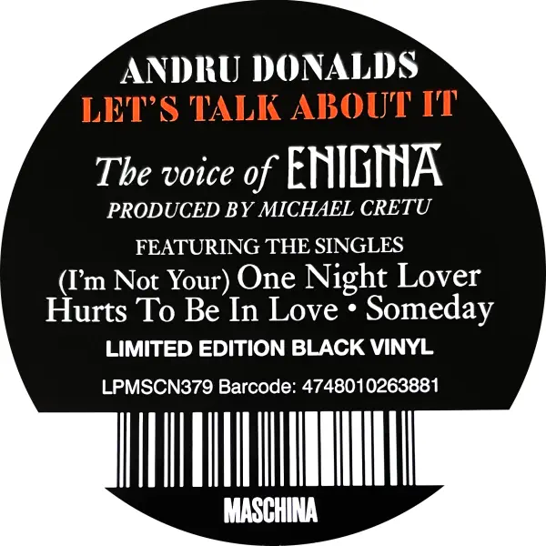 „Let’s Talk About It“ – tai vienas ryškiausių Andru Donalds solinės karjeros albumų, dabar sugrįžtantis riboto leidimo vinilo formatu. Šis leidinys leidžia iš naujo atrasti subtilų, emocingą ir atmosferišką 9-ojo dešimtmečio pabaigos – 10-ojo pradžios pop / soul skambesį, kuriame dera melodingumas, švelni elektronika ir gili, jausminga vokalinė išraiška.