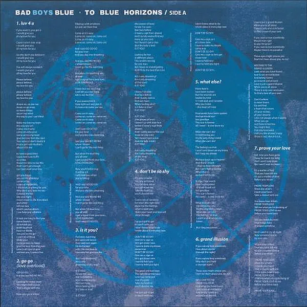 To Blue Horizons is the tenth studio album by German band Bad Boys Blue. It was released on 26 March 1994 by Intercord. Three singles were also released. The record includes two international hits: „Go Go (Love Overload)” and „Luv 4 U”.