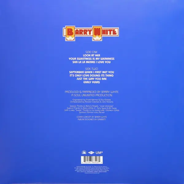 Limited 180gm vinyl LP pressing. Digitally remastered reissue. The Man is the self-produced eighth album by soul singer Barry White, released in 1978 on the revived 20th Century-Fox Records label, which saw it’s name reverted from 20th Century. Barry White was a singer-songwriter, musician, record producer and composer. A three-time Grammy Award-winner known for his distinctive bass-baritone voice and romantic image, White’s greatest success came in the 1970s as a solo singer and with The Love Unlimited Orchestra, crafting many enduring soul, funk, and disco songs. During the course of his career in the music business, White achieved 106 gold albums worldwide, 41 of which also attained platinum status. White had 20 gold and 10 platinum singles, with worldwide record sales in excess of 100 million, and is one of the best-selling music artists of all time. His influences included James Cleveland, Ray Charles, Aretha Franklin, Elvis Presley, The Supremes, The Four Tops, and Marvin Gaye.