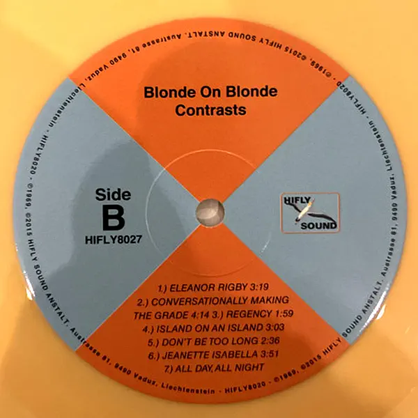 Albumas buvo įrašytas tuo metu, kai iš „Sgt. Pepper“ kilusi progresyvioji kryptis tik įgaudavo pagreitį, o Londono „Middle Earth Club“ scenoje siautėjo naujos muzikinės idėjos. Todėl „Contrasts“ ne tik dokumentuoja istorinį momentą, bet ir ryškiai parodo, kaip Blonde On Blonde stūmė pop ir psychedelic muziką į priekį – subtiliai, tačiau nuosekliai plečiant jos ribas. Šis 2015 m. Hifly Sound Anstalt perleidimas išsiskiria ne tik aukšta garso kokybe, bet ir kolekcininkus džiuginančia detale – limitoto leidimo geltonu vinilu, suteikiančiu išskirtinumo ir vizualinės estetikos, kuri puikiai dera su albumo psihodeline dvasia.