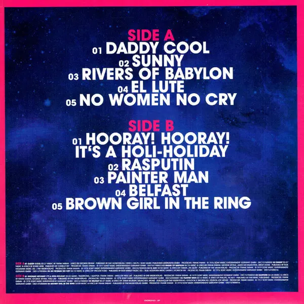 1976 – the year of Boney M.’s first #1 hit „Daddy Cool” and the birth of an extraordinary music career that was to follow Boney M. can be called the heroes of the disco era and there is no question why their best-of release was once called „THE MAGIC OF BONEY M.” It has always been a monument to this super group, because it gathers the treasures of that time and definitely has its own magic! Think of ballads like „El Lute” or the Christmas version of „Mary’s Boy Child” that became famous all over the world Her famous track „Rivers Of Babylon” from 1978 enriches the track list Together with the other #1 tracks „Sunny” or „Ma Baker”; „Brown Girl in The Ring”; „Rasputin”; but also „Belfast” and „Hooray!” Hooray! It’s A Holi-Holiday” are included It’s music for the whole year, it’s music for the whole life.