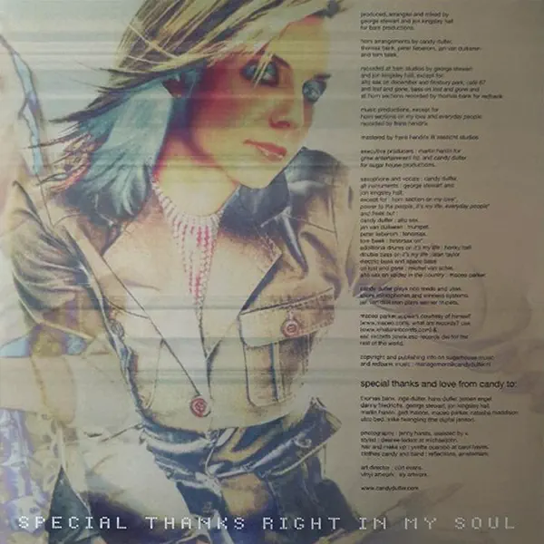 Vinilinė plokštelė „Right In My Soul“ – tai septintasis studijinis olandų saksofonininkės Candy Dulfer albumas, pirmą kartą išleistas 2003 metais ir dabar sugrįžtantis ypatingu 20-mečio leidimu. Šis darbas išsiskiria ne tik išgrynintu smooth jazz ir funk skambesiu, bet ir drąsiai įpintais šiuolaikinės šokių muzikos elementais. Todėl albumas skamba gaiviai, dinamiškai ir iki šiol aktualiai.