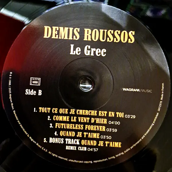 Demis Roussos – Le Grec (Reissue Remastered) (LP) – tai atgaivintas vieno didžiausių graikų balso meistrų albumas, kuriame klasikinė chanson, pop ir romantiška baladžių stilistika susilieja į vientisą muzikinę kelionę. Iš pradžių pasirodęs 1988 metais, šis leidinys tapo neatsiejama Roussos kūrybos dalimi, o dabar – profesionaliai perleistas ir remasterizuotas, kad atskleistų dar daugiau šilumos bei emocijų.