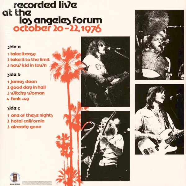 Live At The Forum ’76 features 10 songs recorded in the Fall of 1976, just prior to the release of Hotel California. Live At The Forum ’76 will be a 2LP set on 180-gram vinyl. The tracks will be making their vinyl debut, as they were previously only available on CD and digitally as part of 2017’s „40th Anniversary Edition” of Hotel California. The live music takes up three LP sides while the final one features an exclusive etching of the artwork.