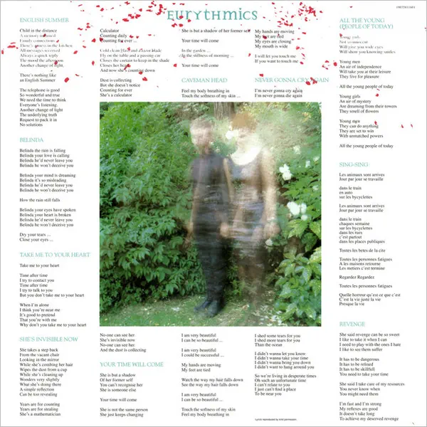 „Eurythmics’ debut album, In the Garden, is the missing link between the work of the Tourists, who included both Dave Stewart and Annie Lennox, and 1983’s commercial breakthrough, Sweet Dreams (Are Made of This). Co-produced by Kraftwerk producer Conny Plank at his studio in Cologne, Germany, it has some of the distant, mechanistic feel of the European electronic music movement, but less of the pop sensibility of later Eurythmics. The chief difference is in Lennox’s singing; even when the musical bed is appealing, Lennox floats ethereally over it, and the listener doesn’t focus on her.” — AllMusic