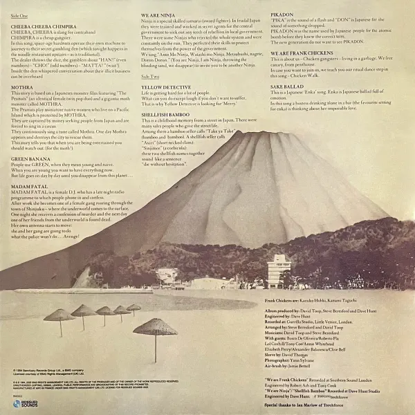 Nuo kultinio hito „We Are Ninja“, kuris ir šiandien skamba tarsi išlokštas iš alternatyvaus kabareto, iki keistai hipnotizuojančio „Shellfish Bamboo“, albumas kuria savitą pasaulį, kuriame elektroniniai ritmai, šnekamosios vokalinės linijos ir absurdiškai žavus humoras nuolat persipina. Be to, jų dainos — tai ne tik įrašai, bet ir performatyvios mini pjesės, kurių energija puikiai atsiskleidžia šiame kruopščiai atkurtame Reissued Sounds 2025 leidime.