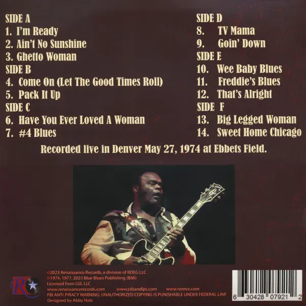 Šis Freddie King – „Alive In America“ (Limited Edition Red Vinyl) (3LP) leidimas, išleistas Renaissance Records 2023 m., yra autentiškas gyvo bliuzo įrašas, perteikiantis nepakartojamą atmosferą ir karštą sceninę dvasą. Tai tikras lobis tiek bliuzo kolekcionieriams, tiek visiems, kurie vertina gyvą, nuoširdžią muziką.