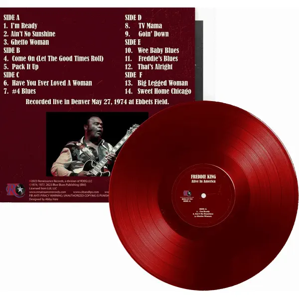 „Alive In America“ – tai įspūdingas Freddie King gyvo pasirodymo albumas, įrašytas 1974 m. gegužės 27 d. Denveryje, Ebbets Field klube. Šis trijų vinilų rinkinys (3LP) išleistas 2023 m. leidykloje Renaissance Records ir pateiktas riboto leidimo raudono vinilo formatu, kuris pabrėžia šio išskirtinio leidimo kolekcinę vertę.