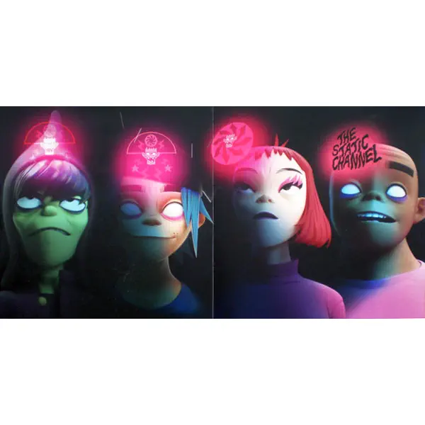 Gorillaz are a British virtual band created in 1998 by musician Damon Albarn and artist Jamie Hewlett. The band primarily consists of four animated members: 2-D (lead vocals, keyboards, melodica), Murdoc Niccals (bass guitar), Noodle (guitars, occasionally keyboards and vocals), and Russel Hobbs (drums and percussion). Their fictional universe is explored through music videos, interviews, and other short cartoons. In reality, Albarn is the only permanent musical contributor and often collaborates with other musicians.