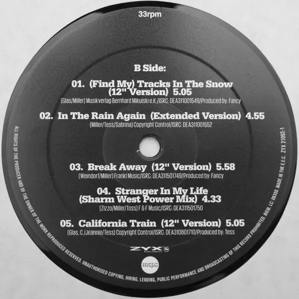 B1. (Find My) Tracks In The Snow (12″ Version) 5:05