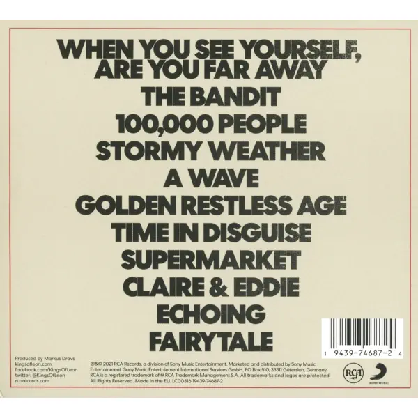When You See Yourself is the highly anticipated new album from KINGS OF LEON, and the band’s 8th studio album. This new collection was recorded at Nashville’s famed Blackbird Studios, and produced by Grammy Award-winning Markus Dravs (Arcade Fire, Coldplay, Florence + the Machine). When You See Yourself propels KINGS OF LEON into 2021 with a modern evolution of their sound.