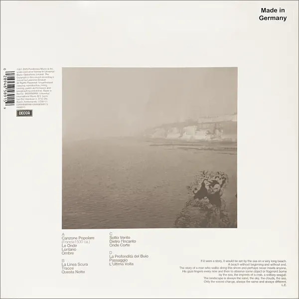 Released in 1996, Le Onde „The Waves” was the first solo piano album released by Ludovico Einaudi. The incredible work featured the following quote from the man himself. „If it were a story it would be set on the seafront of a long beach. A beach without beginning and without end. The story of a man who walks along this shore and perhaps never meets anyone. His gaze lingers occasionally to look at some object or fragment brought from the sea. The footprints of a crab or a solitary seagull. I always take the sand, the sky, some clouds, the sea. Only the waves change, always the same and different, smaller. larger. Shorter. Longer.” Now released on Grey Vinyl for the very first time.
