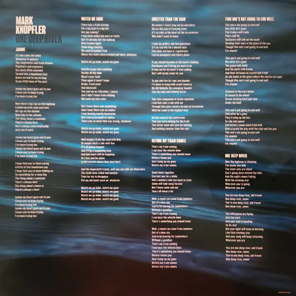 Reikia pabrėžti, kad Knopflerio muzika čia – brandi, filosofiška ir kupina gyvenimiškos išminties. Nors albumas primena jo ankstesnius solinius darbus, vis dėlto „One Deep River“ pasižymi nauja ramybe ir giluma, kuri atsiskleidžia tik klausantis vinilinės versijos. Todėl šis leidinys yra būtinas ne tik ištikimiems gerbėjams, bet ir visiems, kurie vertina autentišką dainų autorių meistriškumą.