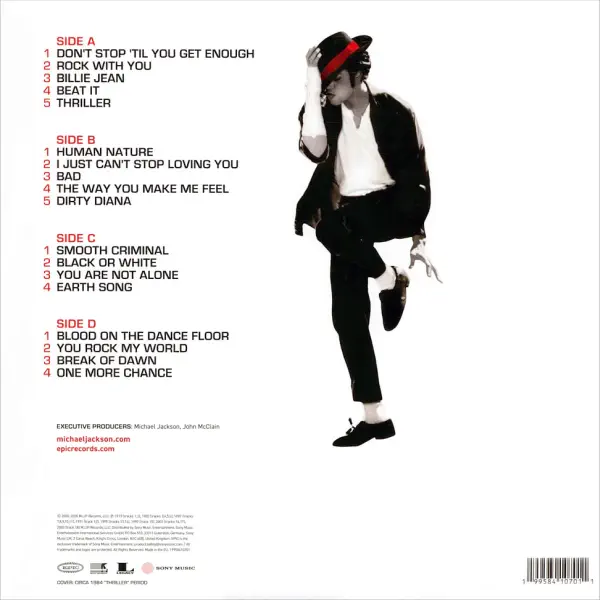 Tuo tarpu dvigubo vinilo formatas leidžia muzikai skambėti plačiai ir dinamiškai, suteikdamas daugiau erdvės detaliems aranžuotėms, ritmui ir vokalo niuansams. Raudonas vinilas ne tik vizualiai išsiskiria lentynoje, bet ir pabrėžia šio leidinio kolekcinę vertę. Todėl tai puikus pasirinkimas tiems, kurie nori turėti reprezentatyvų Michael Jackson diskografijos rinkinį vinile.