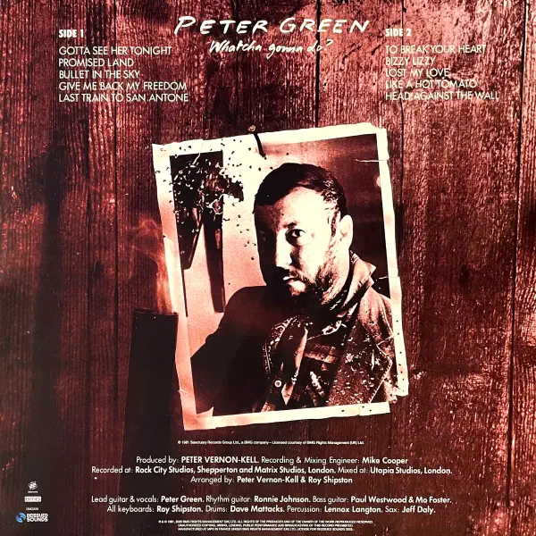 Todėl „Whatcha Gonna Do?“ išlieka svarbus vėlyvesnės Peter Green karjeros įrašas – subtilus, nuoširdus ir kupinas vidinės ramybės. Ši vinilinė plokštelė puikiai papildys tiek britiško bliuzo, tiek klasikinio roko kolekcijas.