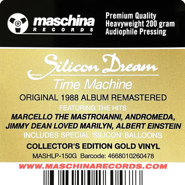 Vinilinė plokštelė „Time Machine“ – tai kultinis 1988 metų albumas, kurį sukūrė vokiečių elektroninės muzikos projektas Silicon Dream, vadovaujamas muzikanto ir prodiuserio Klaus Munzert. Šis albumas yra vienintelis pilnas projekto studijinis LP, todėl jis užima ypatingą vietą 80-ųjų euro disco ir synth-pop istorijoje. 2022 metais leidykla Maschina Records pristatė remasteruotą kolekcinę versiją, išleistą auksinės spalvos vinile (Gold Vinyl).
