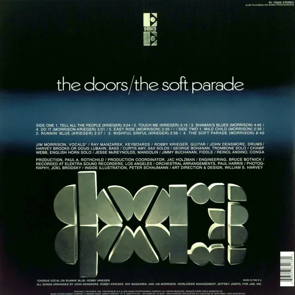 Psichodelinis rokas, džiazinės aranžuotės ir kūrybinė rizika viename iš labiausiai diskutuotinų The Doors albumų – dabar sugrįžta perleistame, jubiliejiniame leidime. Iš pradžių sulaukęs nevienareikšmių reakcijų, The Soft Parade šiandien vertinamas kaip drąsus grupės žingsnis už įprasto skambesio ribų – kupinas eksperimentų, styginių ir pučiamųjų orkestruočių, tačiau išlaikantis The Doors esmę: poetišką tamsą, emocinę įtampą ir nepakartojamą Jim Morrison vokalą.