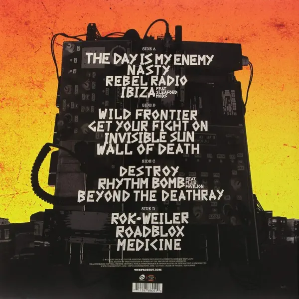 Double vinyl LP pressing. 2015 album from the veteran British electronic band. The Day Is My Enemy is probably the most British sounding album you’ll hear this year. Not British in the flag waving jingoistic sense, but in a way that understands that the night time spaces of urban Britain are a multi-hued cacophony of cultures. If Invaders Must Die was the sound of the rusted urban sprawl decaying like an open wound in the British countryside, then The Day is My Enemy is about the angry humanity existing in the decay of the urban nightmare. Uncompromising first single ‘Nasty’ fires out of the cannons like a ferocious statement of intent and finds Keith Flint at his snarling best. The Prodigy have always cut a solitary path through the noise-scapes of electronic dance music. They’ve dropped five epoch defining studio albums and delivered unforgettable live performances that have taken electronic beats into unchartered territories. Throughout this time they’ve remained resolutely focused on their own vision, inspiring legions of artists along the way.