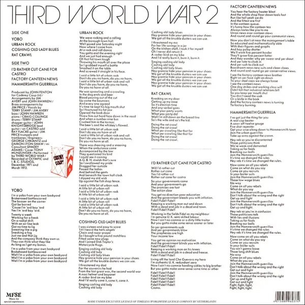 „Third World War 2“ – tai antrasis britų underground blues rock / hard rock / proto-punk grupės Third World War albumas, pirmą kartą išleistas 1971 metais ir šiandien laikomas vienu radikaliausių bei politiškai angažuotų savo laikmečio leidinių. Šis 2017 m. Music For Special Experiences neoficialus perleidimas sugrąžina albumą į vinilo formatą, leisdamas naujai kartai atrasti jo žalią energiją ir nefiltruotą skambesį.