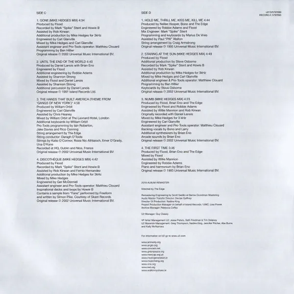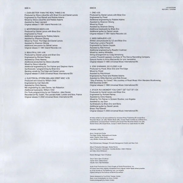 Originally released in November 2002, The Best of 1990-2000 was the second compilation release from U2, the follow up to The Best of 1980-1990. It contained two newly recorded tracks — „Electrical Storm” and „The Hands That Built America” — the latter written for and features on the soundtrack to the 2002 film „Gangs Of New York.” And a selection of tracks were remixed by Mike Hedges for inclusion on the 2002 compilation. The album has now been fully remastered for the double vinyl reissue and will include a download card.