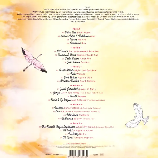 Vinilinė plokštelė „Buddha-Bar by Ravin: Best Of 2“ – tai įspūdinga kompiliacija, tęsianti legendinės Buddha-Bar muzikos serijos tradiciją. Šis 2024 metų trigubas vinilo leidimas (3LP), išleistas leidyklų George V Records ir Wagram Music, pasirodė skaidriame oranžiniame vinile (Clear Orange Vinyl) ir pristato subtilų bei atmosferišką elektroninės world muzikos pasaulį.