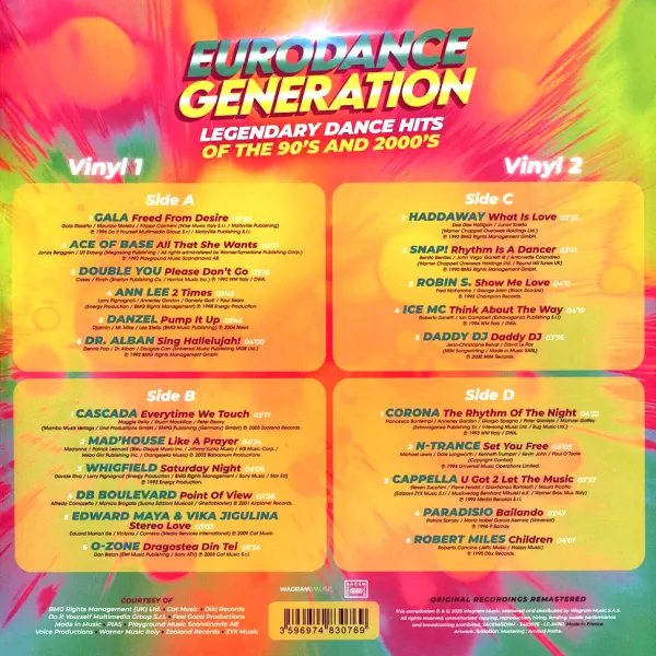Todėl Wagram pristato ypatingą leidimą — „Eurodance Generation“ (2LP), kuris sujungia pačius ryškiausius visų laikų Eurodance kūrinius. Tai dviguba vinilinė plokštelė, atkurianti epochą, kai kiekvienas klubas skambėjo Gala „Freed From Desire“, o radijo stotys negalėjo apsieiti be Cascada, Dr. Alban, Corona ar legendinio O-Zone hito „Dragostea Din Tei“.