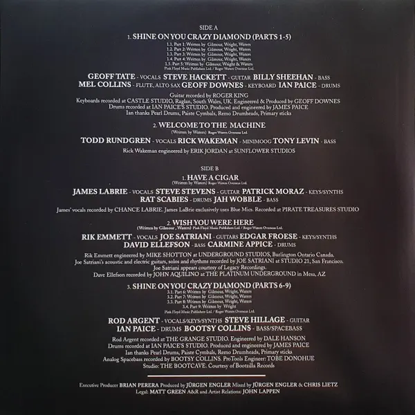 A1. Shine On You Crazy Diamond (Parts 1-5) (feat. Geoff Tate, Steve Hackett, Billy Sheehan, Mel Collins, Geoff Downes, Ian Paice)